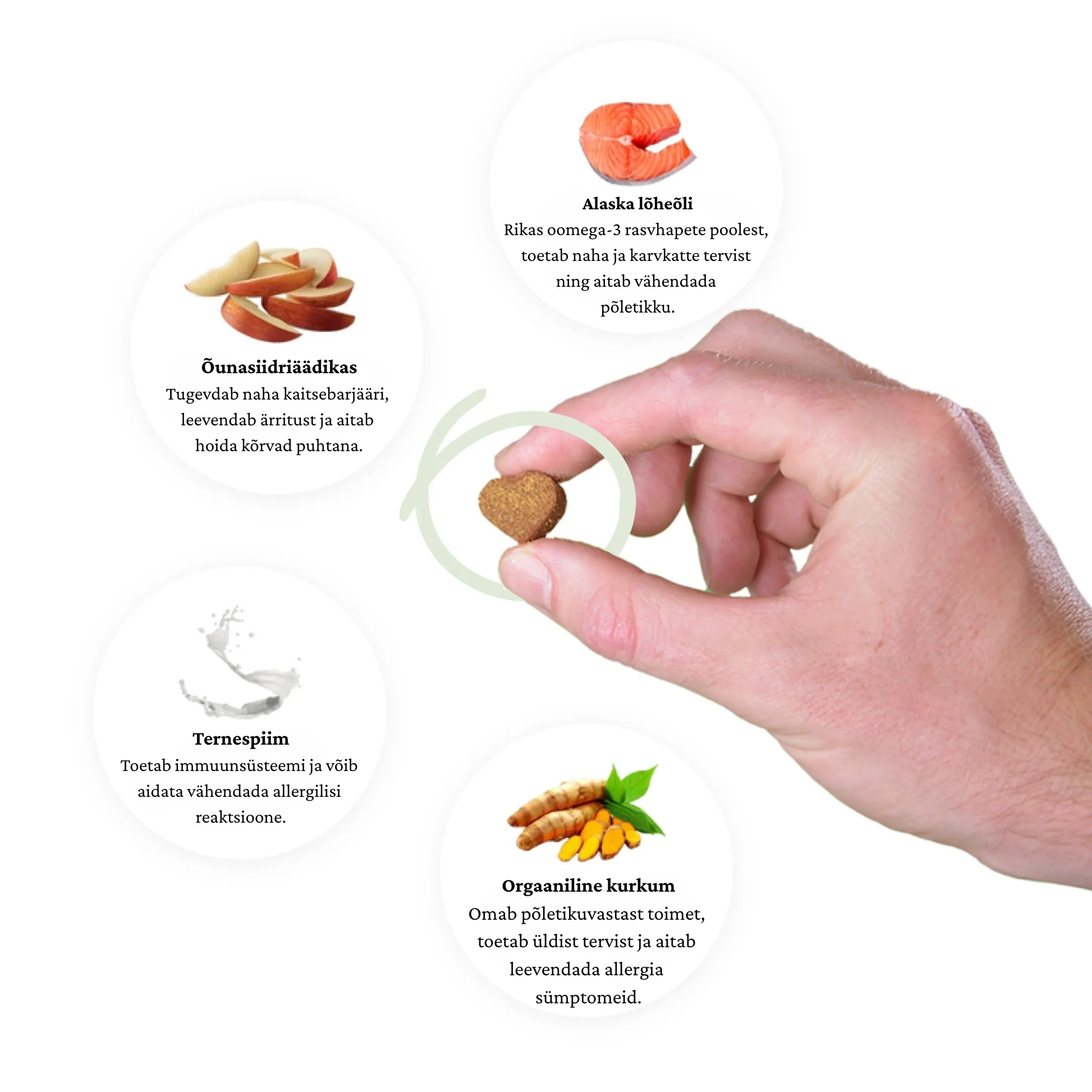 Allergy & Itch on spetsiaalselt loodud toetama sinu koera immuunsüsteemi ning aitama leevendada sügelust ja allergiast tingitud ebamugavust.